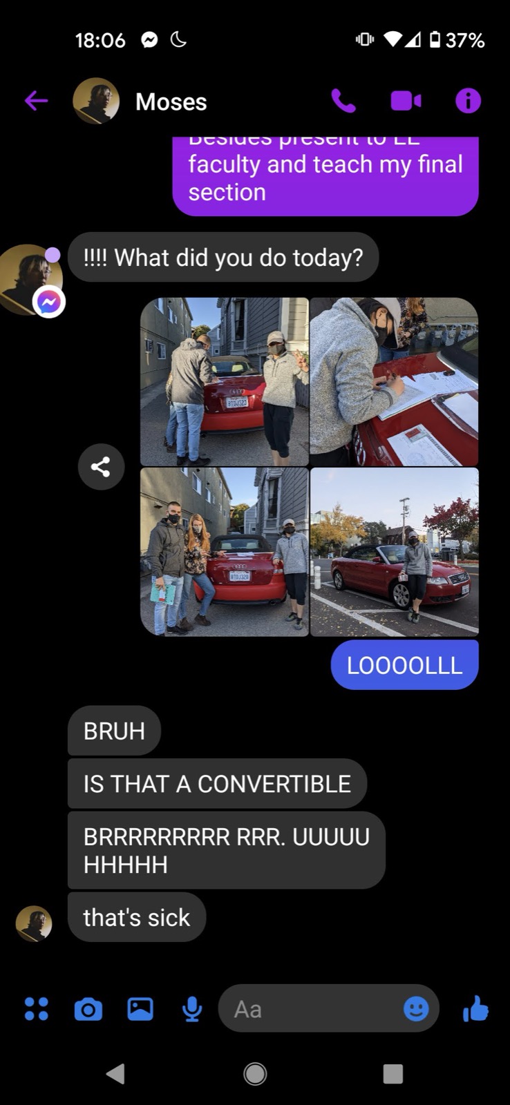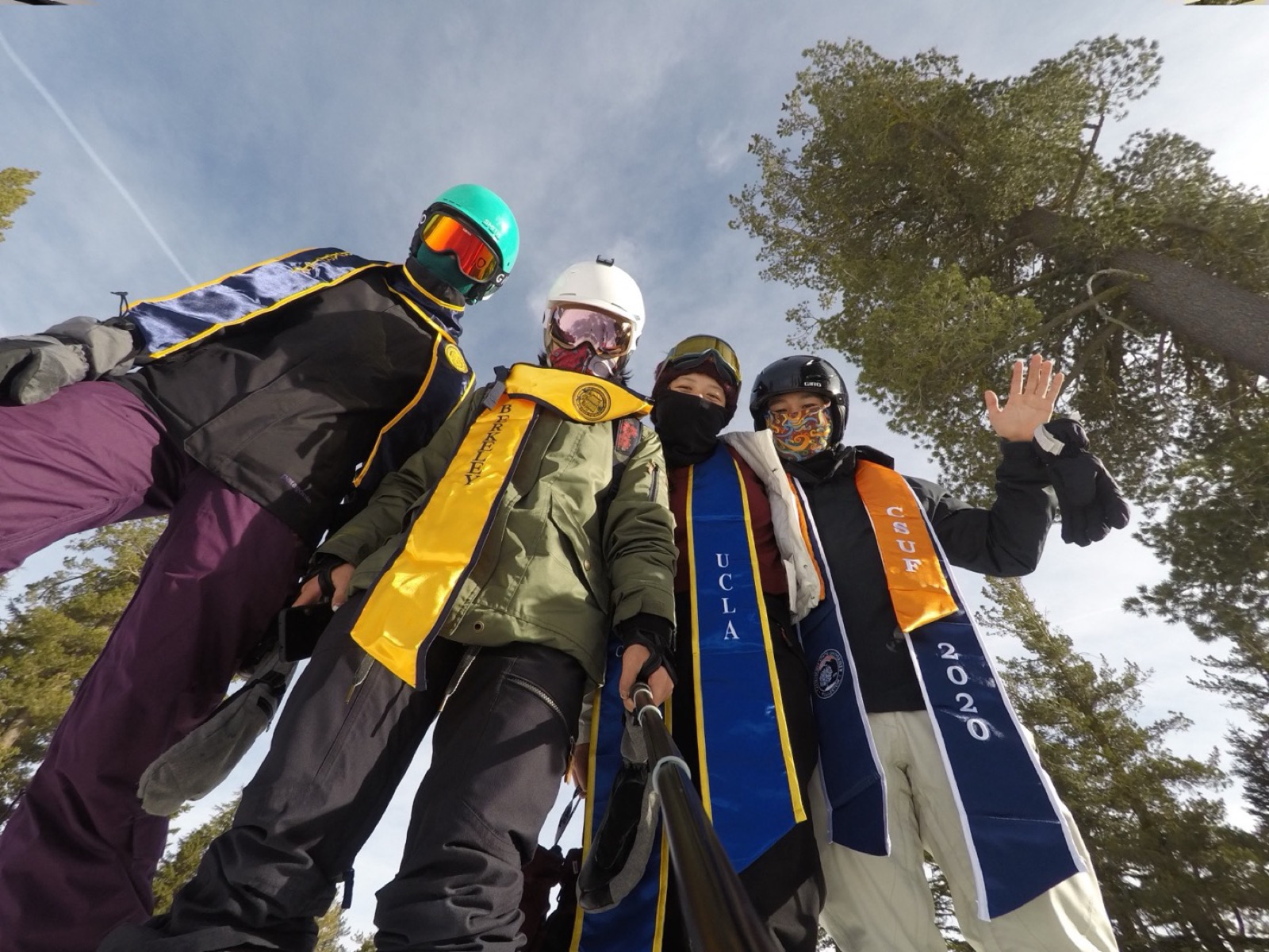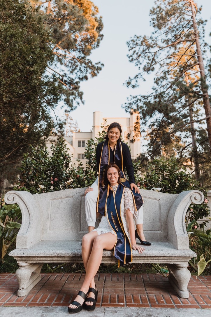 Lots of cafe dates and hanging out in Berkeley. Kay pops into the Zoom computer science class that Michelle TAs. Michelle invites Kay to an exclusive and awesome trip—Study Buddies—where eight soon-to-be friends go to study together in an Airbnb the week before finals. Kay, as a trip driver, tries to impress Michelle and friends with her humor in showing the car's trunk capacity to the group. Michelle graduates in Winter 2020. Kay finishes her last semester in between Tahoe ski trips. Kay graduates in the Spring.